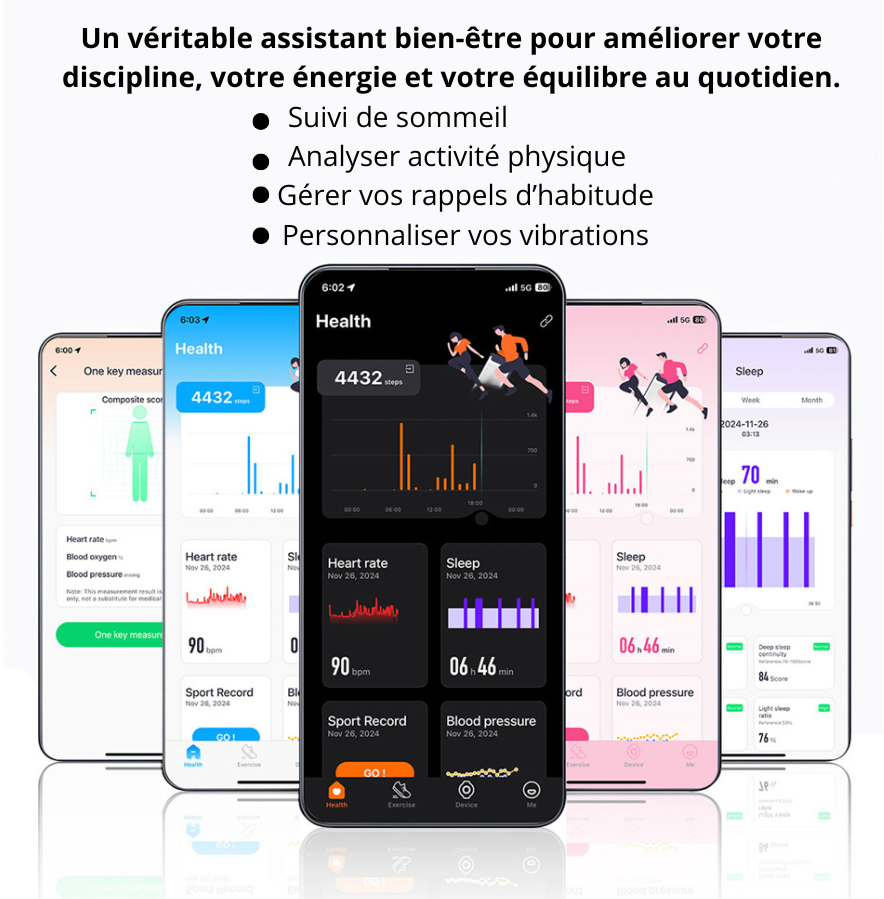 Grâce à ses vibrations intelligentes, elle vous réveille en douceur chaque matin, sans stress ni bruit agressif.